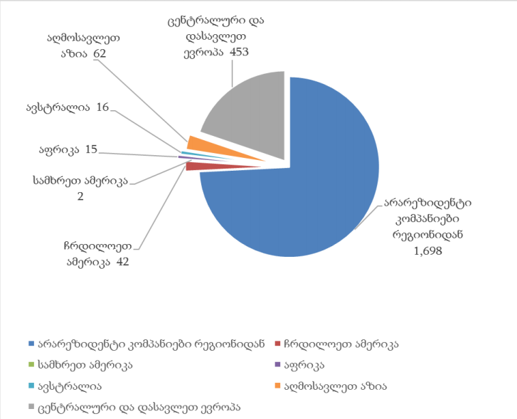 არარეზიდენტი მიმწოდებლების განაწილება რეგიონების მიხედვით შემდეგია: