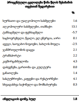 5.7%-ით გაიაფდა ტანსაცმელი და ფეხსაცმელი. 2.5%-ით მოიკლო ავეჯის და საოჯახო ნივთების ფასებმა.