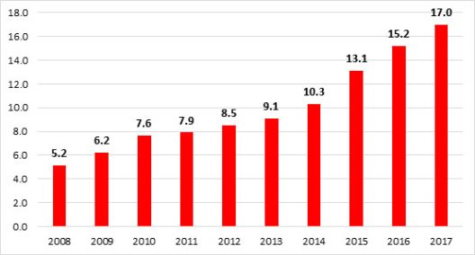 საშინაო ვალი კი 2017 წელს 356 მილიონი ლარით გაიზარდა და 3.6 მილიარდი ლარი შეადგინა.