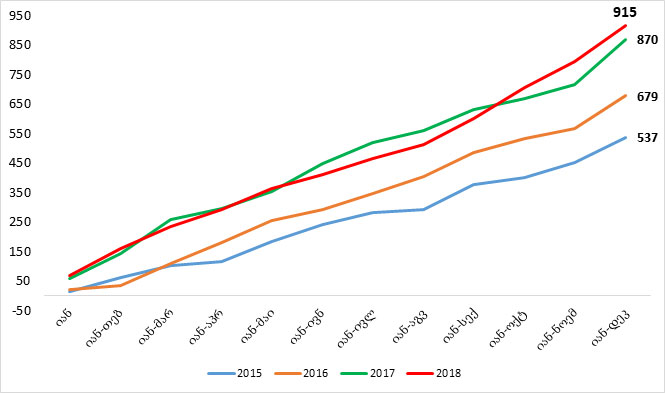2018 წელს კომერციული ბანკების მოგებამ 915 მილიონი ლარი შეადგინა
