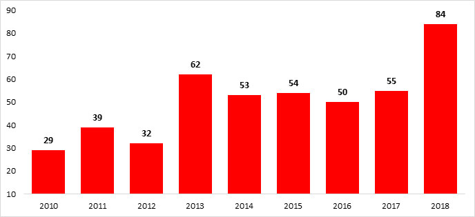 2010-2012 წლებში საგზაო ჯარიმებიდან ბიუჯეტში საშუალოდ 33 მილიონი ლარი შედიოდა, 2013-2017 წლებში კი საშუალოდ 55 მლნ ლარი. 2018 წლის მაჩვენებელი რეკორდულად მაღალია.