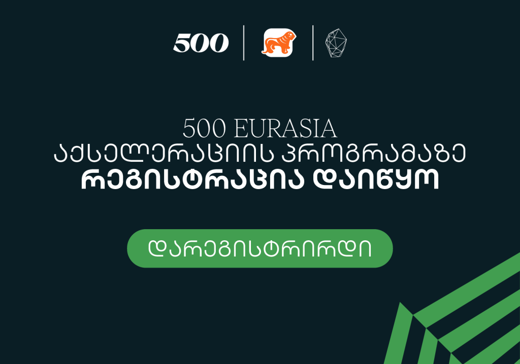 სტარტაპების სწრაფი ზრდისა და საერთაშორისო ბაზარზე მასშტაბირების ხელშეწყობისათვის, 500 Global in Eurasia-ს მერვე ნაკადზე განაცხადების მიღება დაიწყო. პროექტში მონაწილეობისთვის, რეგისტრაციის გავლა ბმულზეა შესაძლებელი.