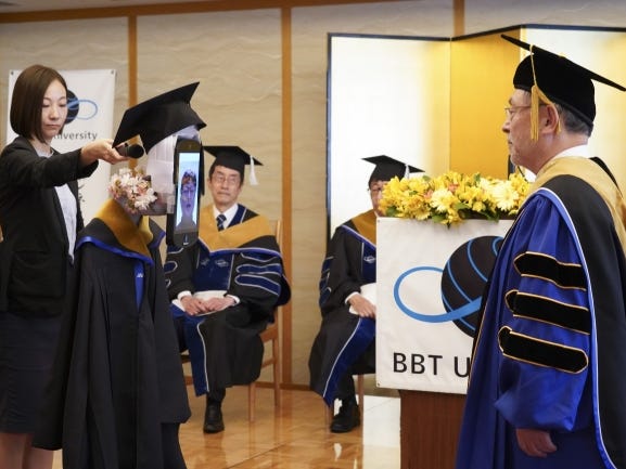 Virtual gatherings have become more common, but BBT University took a novel approach, using remotely controlled robots to make the ceremony more physical. Here’s what it was like.