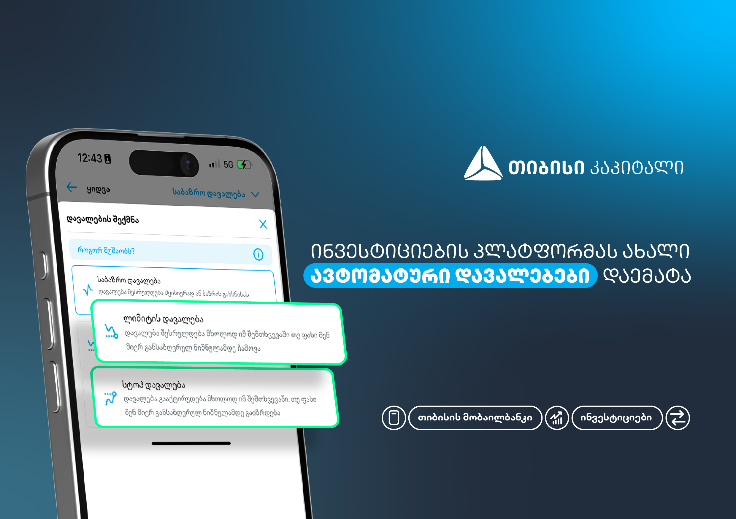 ახალი, ავტომატური დავალებები თიბისის მობაილბანკის ინვესტიციების პლატფორმაზე