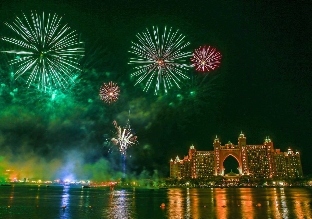 ტრადიციულად, საახალწლო ზეიმი დუბაიში გრანდიოზული ფეიერვერკით აღინიშნება. ყოველწლიურად მსოფლიოში ყველაზე დიდი ცათამბჯენი – ბურჯი ხალიფა სანახაობრივ ლაზერულ და პიროტექნიკურ მეგაშოუს მასპინძლობს. ფეიერვერკის საყურებლად საუკეთესო ადგილია ახლომდებარე რესტორანი CÉ LA VI Address Sky View Hotel-ში, Asado Palace Downtown ან Abd El Wahab სავაჭრო კომპლექსში Souk Al Bahar. Palm Jumeirah პალმა ჯუმეირას კუნძულის სტუმრებს შეგიძლიათ ისიამოვნოთ საახალწლო ფეიერვერკით Atlantis The Palm-ის ზემოთ მდებარე AURA Skypool -ის პანორამული აუზის ტერასიდან.