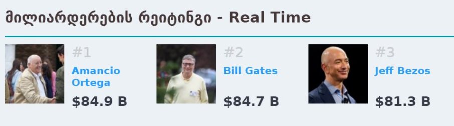 ფორბის მილიარდერთა სამეული Real Time რეჟიმში ამწუთებში ასე გამოიყურება: