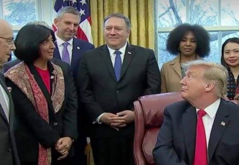 İmza töreninde Nino Zambakhidze, Başkan Trump’a ve törendeki hazır bulunanlara, hayatını değiştiren ABD hükümeti tarafından verilen ödül hakkında bilgi verdi.