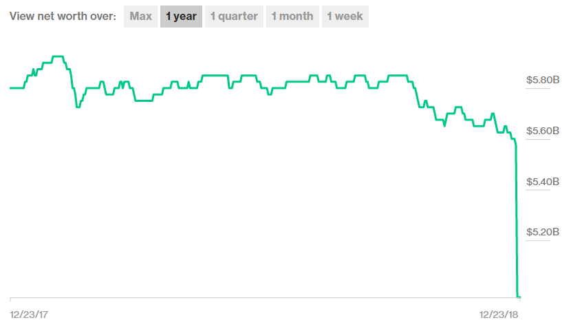 Bloomberg-ის მილიარდერთა ინდექსის მიხედვით, საქართველოს ექს-პრემიერის და მმართველი პარტიის ხელმძღვანელის ბიძინა ივანიშვილის ქონება ერთ დღეში – 22 დეკემბრიდან 23 დეკემბრამდე პერიოდში $600 მილიონით შემცირდა. ამჟამად გამოცემას სიაში ერთადერთი ქართველის ქონება 4.97 მილიარდ დოლარად აქვს შეფასებული, რაც 10.8%-ით ნაკლებია ორი დღის წინანდელ მაჩვენებელზე. ჯამში წლის დასაწყისიდან ივანიშვილის ქონება 825 მილიონი დოლარით, ანუ 14.2%-ით შემცირდა.