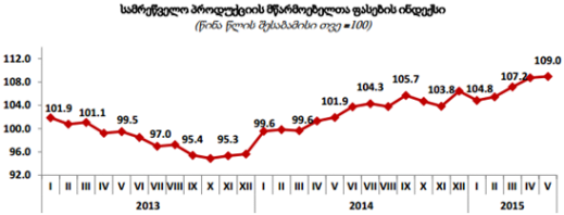 სამრეწველო პროდუქციის მწარმოებელთა ფასების ინდექსი უჩვენებს, თუ რამდენად ძვირდება/იაფდება სამრეწველო პროდუქციის წარმოება საქართველოში. აღნიშნული ინდექსი მიმდინარე წლის მაისში წინა თვესთან (აპრილთან) შედარებით 0.8%-ით გაიზარდა, ხოლო წინა წლის მაისთან შედარებით 9%-ით.