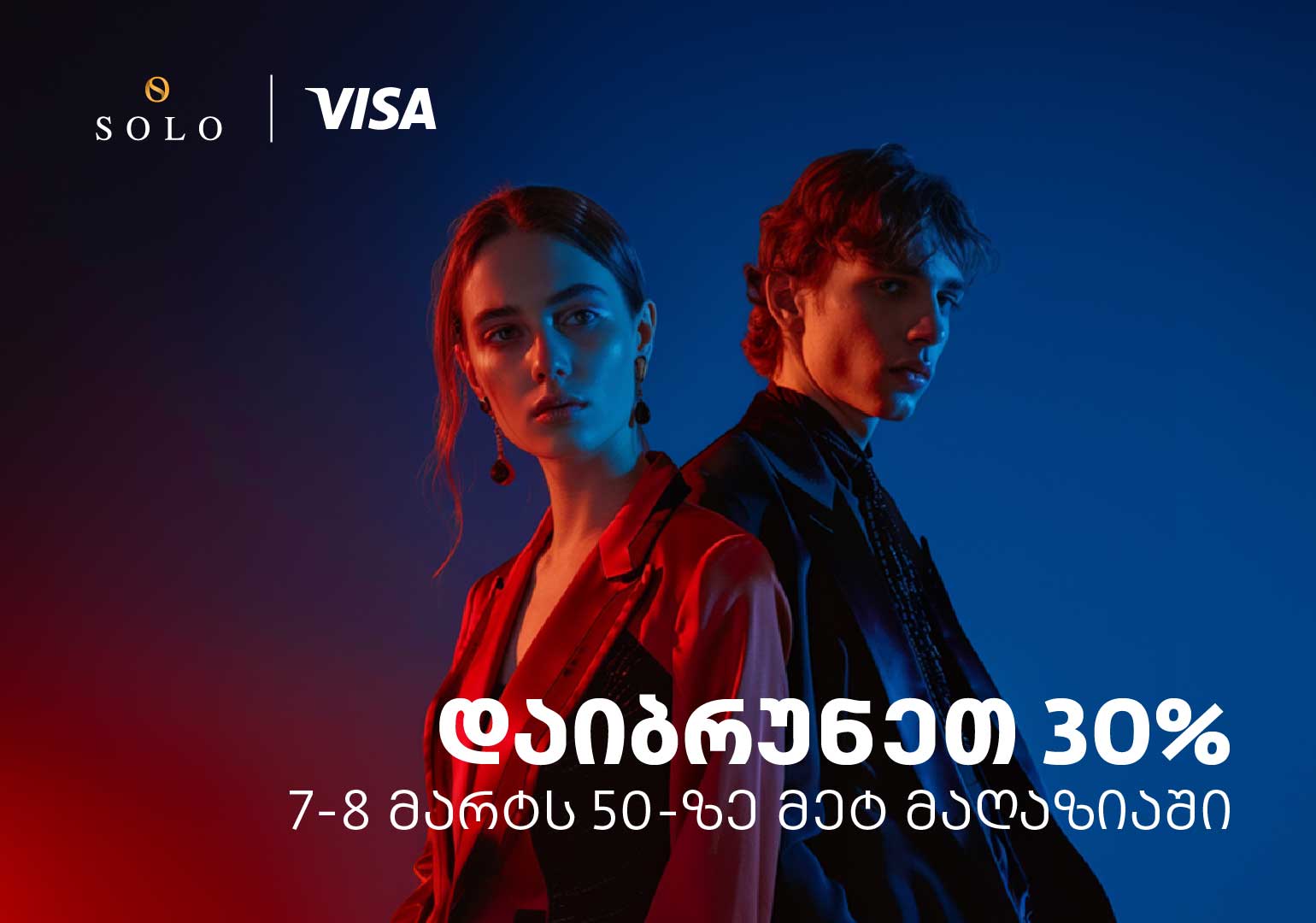 SOLO Visa ბარათით გადახდის შემთხვევაში, მომხმარებლებს ანგარიშზე გადახდილი თანხის 30% (ჯამურად მაქს. 250 ლარი) დაუბრუნდებათ.