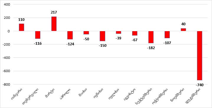 გრაფიკი: 2017 წლის ნაერთი ბიუჯეტის დეფიციტი თვეების მიხედვით