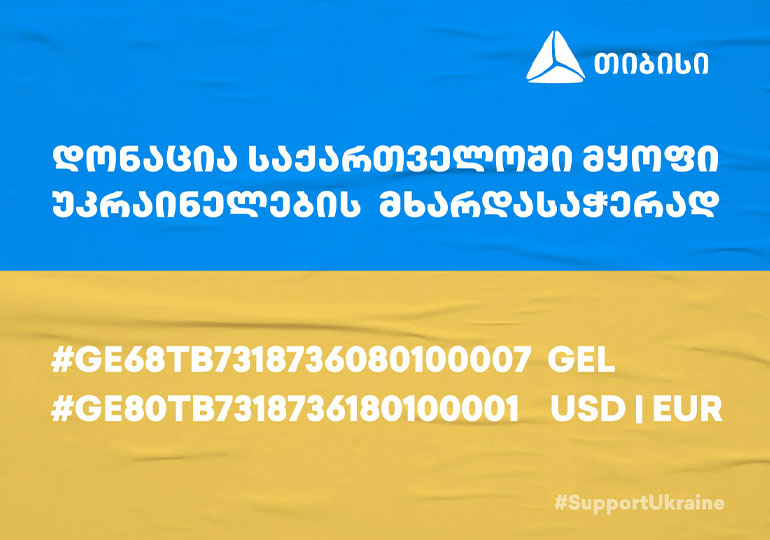 უკრაინელების მხარდასაჭერად, თიბისიმ საქველმოქმედო ანგარიში უკრაინაში საომარი მოქმედებების დაწყებისთანავე გახსნა და ნებისმიერ მსურველს შესაძლებლობა მისცა, მისთვის სასურველი თანხა უკრაინელი ხალხის დასახმარებლად ჩაერიცხა და გამხდარიყო ქველმოქმედების მონაწილე. გუნდის სახელით, თიბისიმ ფონდში 200 000 ლარი ჩარიცხა.  ინიციატივას  არაერთი მოქალაქე და კომპანია შემოუერთდა. ერთობლივი ძალისხმევით, უკრაინის დასახმარებლად 1.7 მილიონ ლარზე მეტი შეგროვდა. თანხა სრულად გადაირიცხა უკრაინის ეროვნული ბანკის ოფიციალურ საქველმოქმედო ანგარიშზე.