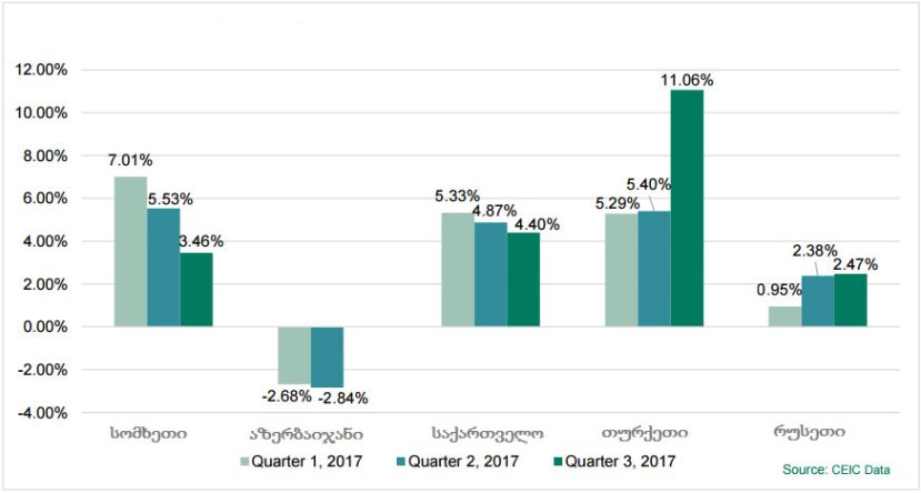 ISET-ის მონაცემებით, რეგიონის ქვეყნებიდან III კვარტალში ყველაზე მაღალი ზრდა თურქეთში დაფიქსირდა, სადაც ეკონომიკა 11,05%-ით არის გაზრდილი. აღსანიშნავია, რომ თურქეთის ეკონომიკა მეორე კვარტალში 5,4%-ით იყო გაზრდილი.