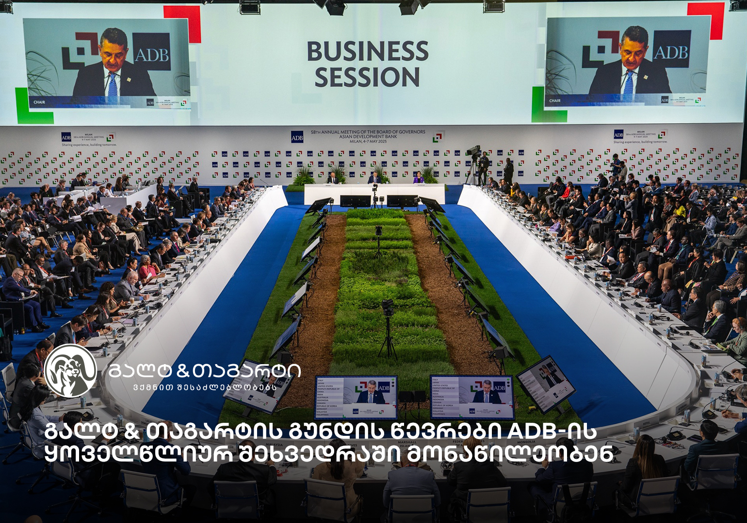 საქართველოში წამყვანი საინვესტიციო ბანკის, გალტ & თაგარტის გენერალური დირექტორი, გიორგი კუპრაშვილი, დირექტორის მოადგილე, ქეთევან თოიძე და კაპიტალის ბაზრების სამსახურის უფროსი, ვანო კიკვილაშვილი აზიის განვითარების ბანკის მიერ გამართულ ყოველწლიურ შეხვედრაში იღებენ მონაწილეობას. აზიის განვითარების ბანკის მმართველთა საბჭოს 58-ე ყოველწლიური შეხვედრა 4-7 მაისს, მილანში იმართება. ღონისძიება მასპინძლობს მსოფლიოს მასშტაბით წამყვან ფინანსურ ორგანიზაციებს, სხვადასხვა ქვეყნის ლიდერებს, საინვესტიციო ბანკირებს, ეკონომისტებს და ა.შ.