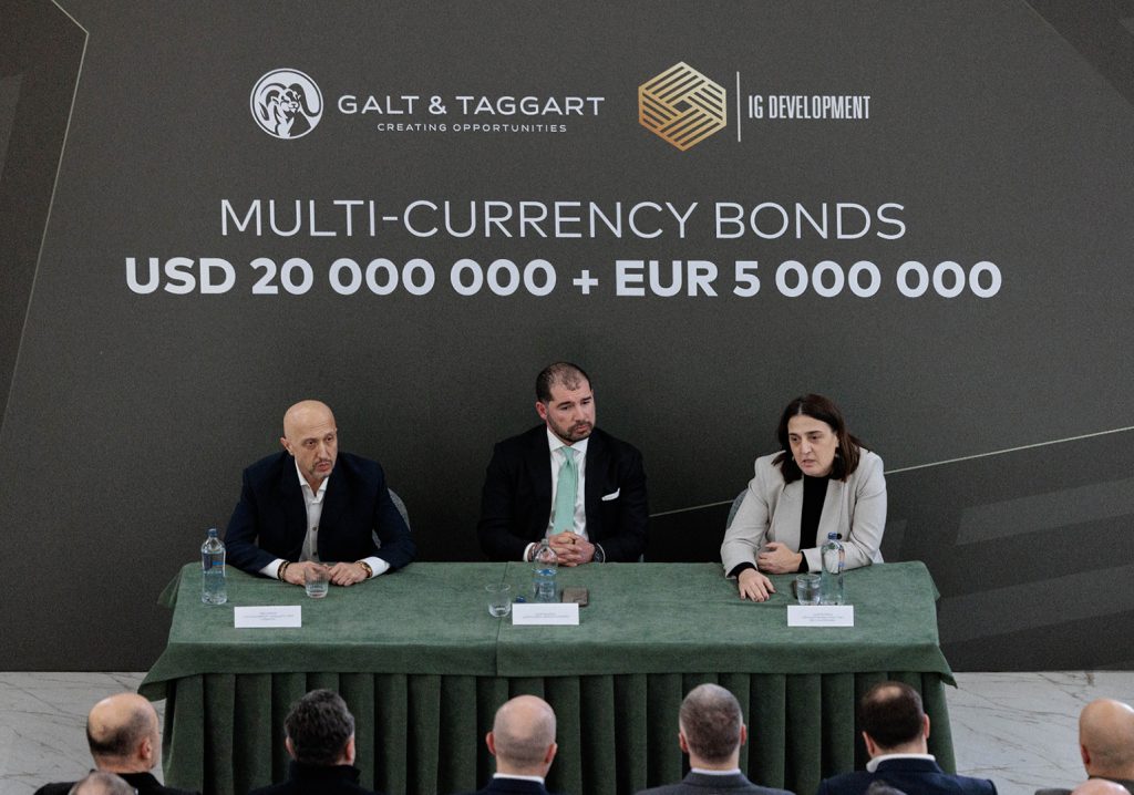 „გალტ & თაგარტის“ მხარდაჭერით, კომპანია „აი ჯი დეველოფმენტ ჯორჯიამ“, მულტი-სავალუტო პროგრამის ფარგლებში ობლიგაციების პირველი და მეორე ტრანშების წარმატებით დასრულებასთან დაკავშირებით კონფერენცია გამართა. პროგრამის ფარგლებში, კომპანიას ჯამურად გამოშვებული და განთავსებული აქვს 20 მილიონი აშშ დოლარისა და 5 მილიონი ევროს ობლიგაციები.