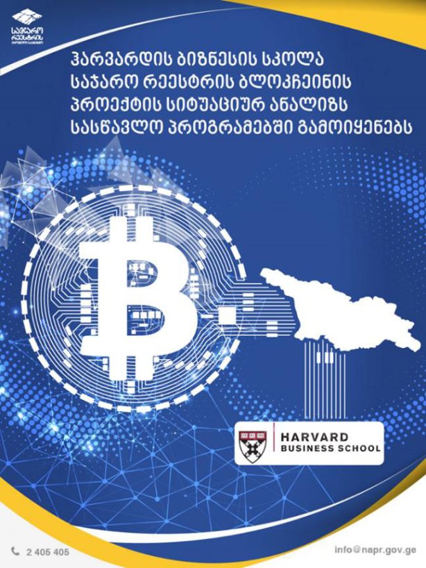 ჰარვარდის ბიზნესის სკოლა საქართველოში მიმდინარე ბლოკჩეინის პროექტის სიტუაციურ ანალიზს (case study) სასწავლო პროგრამებში გამოიყენებს. საქართველოს მაგალითი ბიზნესის სკოლის სხვადასხვა ღონისძიებებშიც იქნება განხილული.