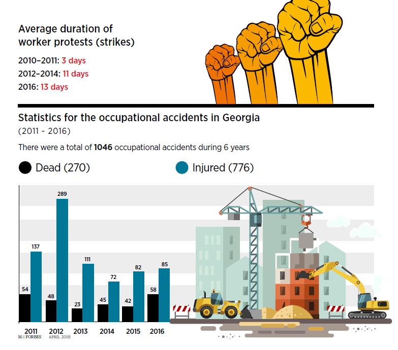 In addition, the Human Rights Educating and Monitoring Center (EMC) published a study on the issue and continues to urge the government to take effective measures to tackle this problem. Along with other interesting facts, the report provides statistics reflecting the occupational accidents that have transpired in recent years.