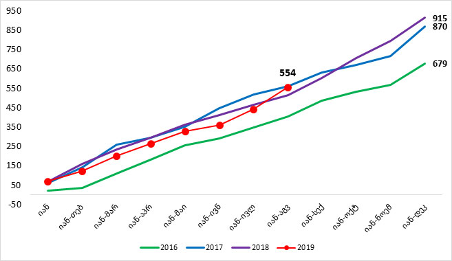 მიმდინარე წლის აგვისტოში ბანკების წმინდა მოგებამ 110 მლნ ლარი შეადგინა, რაც 61 მლნ ლარით მეტია 2018 წლის აგვისტოს მაჩვენებელზე.
