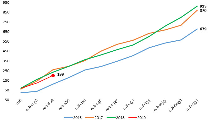მარტში ბანკების წმინდა მოგებამ 75.1 მლნ ლარი შეადგინა, რაც 0.6 მლნ ლარით (1%-ით) ნაკლებია 2018 წლის მარტის მაჩვენებელზე.