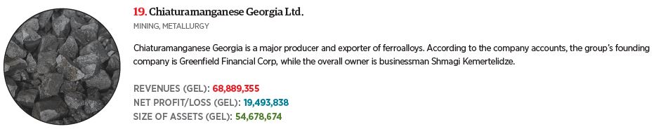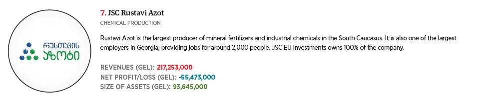 As most of Georgia’s largest companies now publish their audited financial results, it is possible to identify the leading firms in each sector. Forbes Georgia, together with the consulting firm Ebit Group, has compiled the index of Georgia’s largest manufacturers.