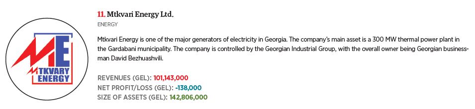 The index includes private companies operating in Georgia that are involved in various fields of manufacturing; including energy, metallurgy, mining, beverage production and some others.