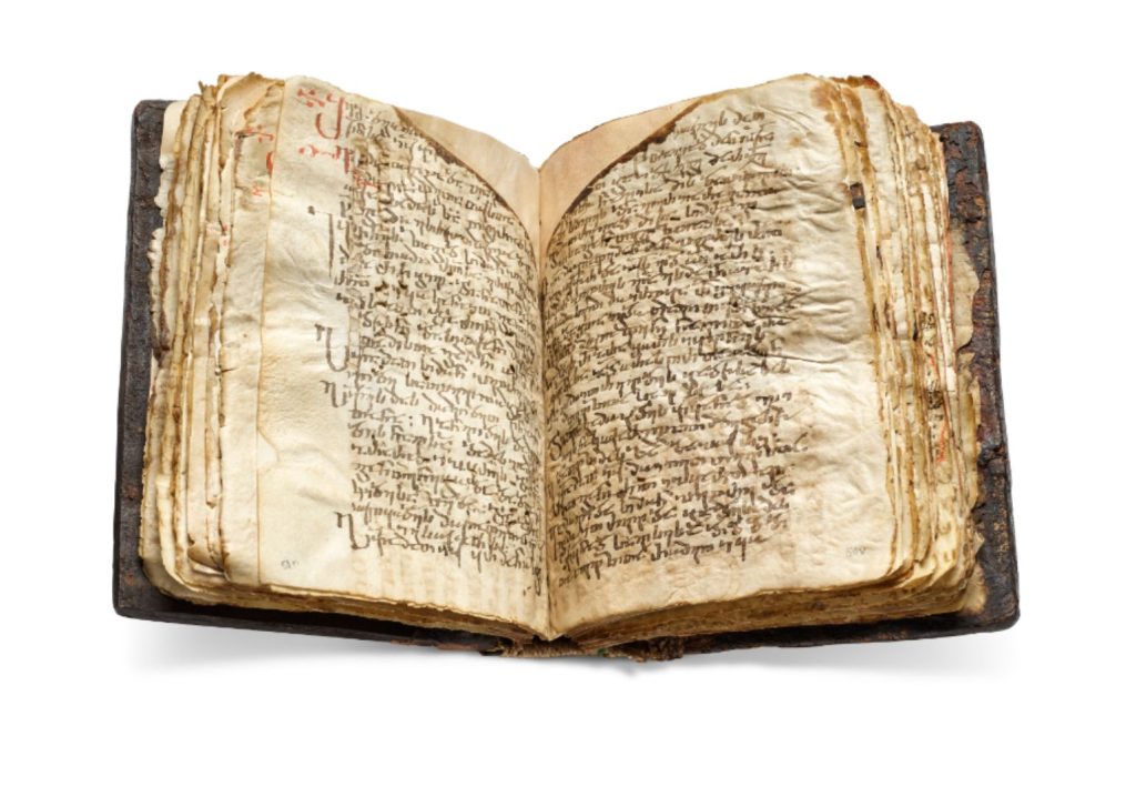 როგორც Christie’s-ის სააუქციონო სახლის აღწერაში ვკითხულობთ, ხელნაწერის ძველი ტექსტი ქრისტიანული პალესტინის არამეულ ენაზე, კერძოდ დასავლურ არამეულ დიალექტზეა შექმნილი, რომელსაც მელქის ქრისტიანული საზოგადოება პალესტინასა და ტრანსიორდანიაში მე-5 და მე-13 საუკუნეებში იყენებდა. ის მხოლოდ რამდენიმე წარწერაშია შემონახული, პალიმფსესტსა და ხელნაწერში. ხელნაწერი, რომელიც მე-5-მე-7 საუკუნით თარიღდება, შეიცავს სახარებების ყველაზე ადრეულ ტექსტებს არამეულის უახლოეს დიალექტზე – იესოს დიალექტზე.