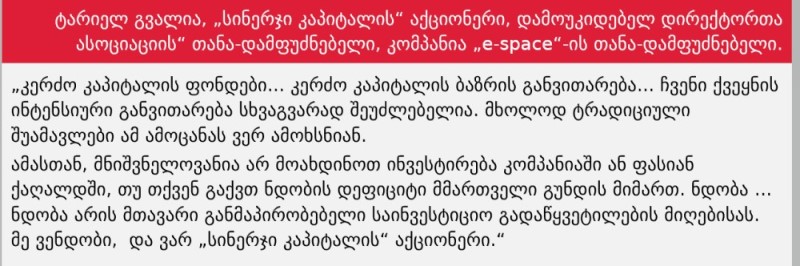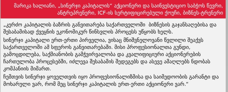 კერძო კაპიტალის ბაზარი საქართველოში ვითარდება – “სინერჯი კაპიტალის“ და მისი აქციონერების როლი