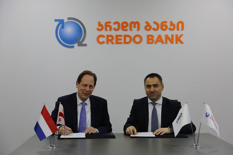 კრედო ბანკსა და ნიდერლანდების განვითარების ბანკს, FMO-ს შორის, 26 მილიონი ლარის სასესხო ხელშეკრულება გაფორმდა. ხუთწლიანი სესხის მიზანია, ხელი შეუწყოს ახალგაზრდა მეწარმეებს მიკრო, მცირე და საშუალო ბიზნესის განვითარებაში.