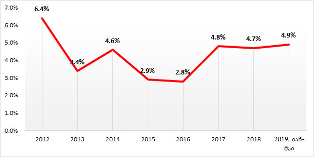 მაისში საქართველოს ეკონომიკა 4.7 პროცენტით გაიზარდა