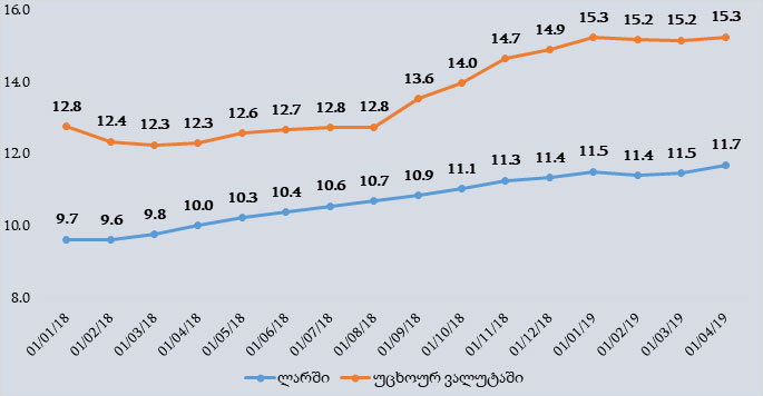 ბოლო ერთ წელიწადში ლარში გაცემული სესხები 1.7 მილიარდი ლარით არის გაზრდილი, ხოლო უცხოურ ვალუტაში გაცემული სესხები კი 573 მლნ დოლარით.