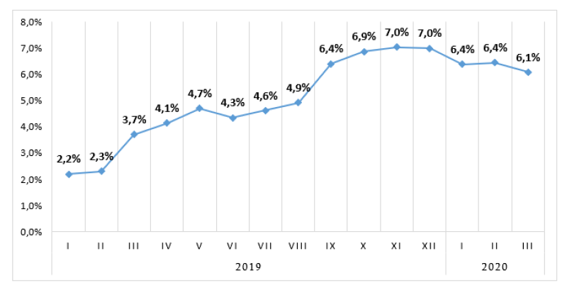 საქართველოს სტატისტიკის ეროვნული სამსახურის ინფორმაციით მარტში სამომხმარებლო საქონლისა და მომსახურების ფასების დონე 0.7%-ით გაიზარდა, წლიურმა ინფლაციამ (12 თვის) კი 6.1% შეადგინა, რაც ნიშნავს, რომ ბოლო ერთ წელიწადში სამომხმარებლო პროდუქცია 6.1-ით გაძვირდა.