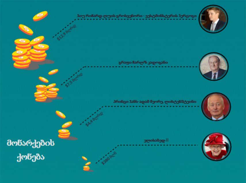 მსოფლიოს უმდიდრესი ადამიანების რეიტინგებში მუდმივად ხვდებიან სხვადასხვა ქვეყნის სამეფო ოჯახის წარმომადგენლები. Bloomberg Billionaires Index-ში სამეფო ოჯახის ერთ-ერთი ყველაზე მდიდარი წარმომადგენელი ლიხტენშტეინის პრინცი ჰანს-ადამ მეორეა, რომლის ქონებაც $4,4 მლრდ-ს შეადგენს. პრინცმა ქონება მისი ოჯახის კუთვნილი ბანკის LGT Group-ის წყალობით დააგროვა. მხოლოდ მიმდინარე წელს კი მისი ქონება $1,7 მილიარდით გაიზარდა.