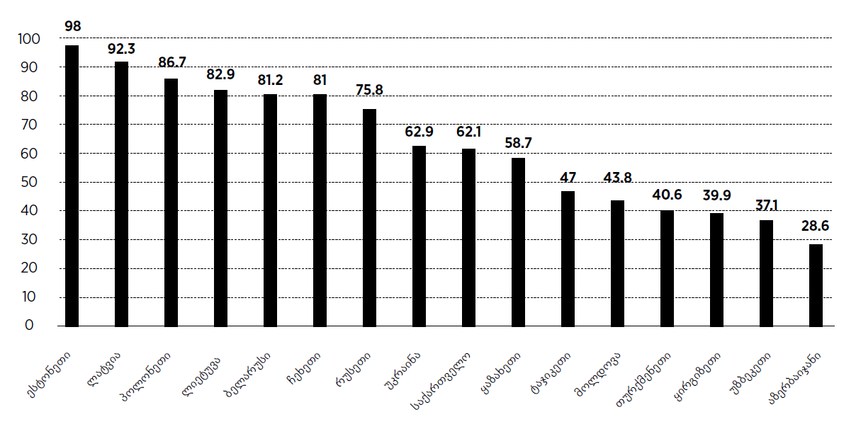 მსოფლიოში სხვადასხვა საფინანსო ინსტიტუტში ანგარიში მოსახლეობის 69 %-ს აქვს გახსნილი. საქართველოში კი ეს მაჩვენებელი შედარებით დაბალი – 61.2%-ია. მსოფლიო ბანკის მონაცემებით, იმ მოსახლეობის წილი, ვისაც ანგარიში აქვს, ბოლო წლებში საქართველოში მკვეთრად გაიზარდა – 2014 წელს მათი პროცენტული წილი მხოლოდ 36.7% იყო. მსოფლიო ბანკის The Global Findex-ის მიხედვით, საფინანსო ინსტიტუტში ანგარიში 2014-დან 2017 წლებში 515 მილიონმა ზრდასრულმა ადამიანმა გახსნა. მაღალშემოსავლიან ქვეყნებში საბანკო ანგარიში მოსახლეობის 94%-ს აქვს გახსნილი, ხოლო განვითარებად ქვეყნებში – 63%-ს. ჩვენი ყურადღების ცენტრში ამჯერად პოსტსაბჭოთა სამყარო მოექცა. პოსტსაბჭოთა ქვეყნების რეიტინგი საინტერესოა, რადგან ამ ქვეყნებში კომერციული საბანკო სექტორი დაახლოებით ერთ დროს ჩნდება.
