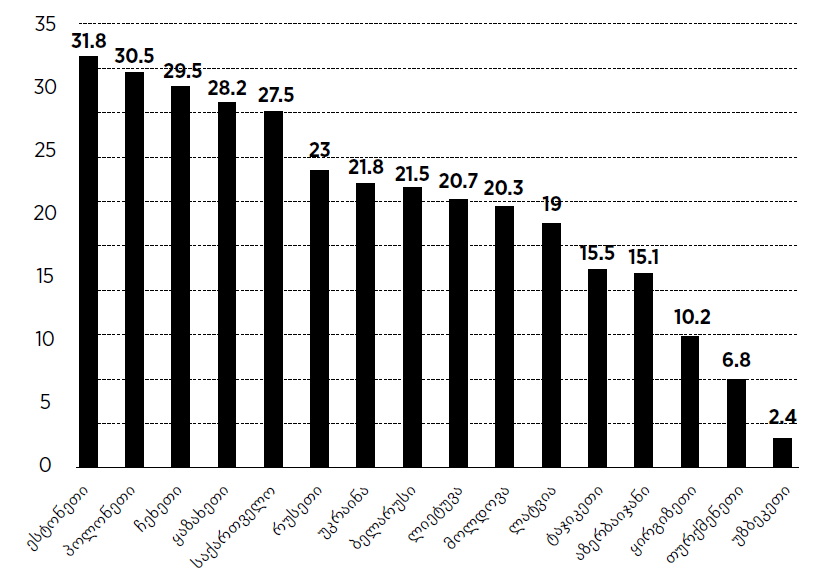 მოსახლეობის წილი, ვინც ბოლო 1 წელიწადში თანხა საფინანსო ინსტიტუტში შეინახა