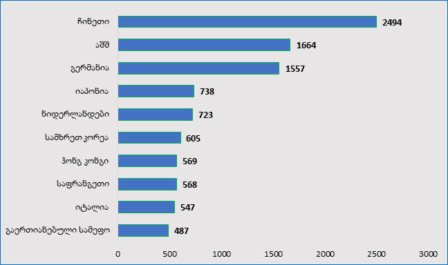 გრაფიკი: ტოპ 10 ექსპორტიორი ქვეყანა, მილიარდ დოლარებში