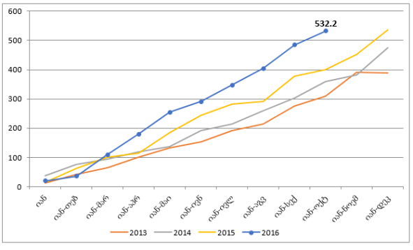 გრაფიკი – კომერციული ბანკების წმინდა მოგება, მლნ ლარებში: