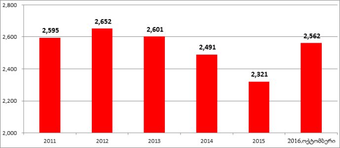 გრაფიკი – უცხოური ვალუტის ოფიციალური რეზერვების ტენდენცია, მლნ აშშ დოლარში: