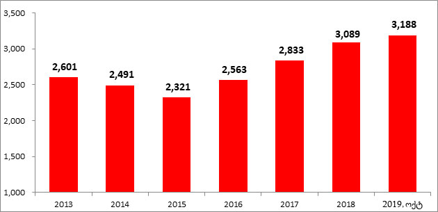 გრაფიკი: უცხოური ვალუტის ოფიციალური რეზერვები, მილიონი აშშ დოლარი