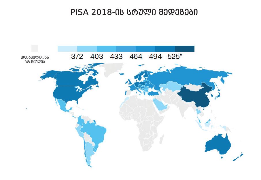 2018 წლის შეფასებით, საქართველომ მონაწილე 77 ქვეყანას შორის ერთ-ერთი დაბალი შედეგები აჩვენა. მაგალითად, წაკითხულის გააზრების მხრივ, 70-ე ადგილს იკავებს და მისი საშუალო ქულა 380-ს შეადგენს. ეს 2015 წლის კვლევასთან (410 ქულასთან) შედარებით, 21 ქულით გაუარესებულ მაჩვენებელს წარმოადგენს. მათემატიკის მიმართულებით საქართველოს ქულა 398-ია, რითაც ქვეყანა 66-ე ადგილზე გავიდა. 2015 წლის ანგარიშში ქვეყნის შეფასება 404 იყო, შესაბამისად, გაუარესება 6 ქულას შეადგენს.