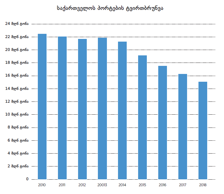 2010 წელთან შედარებით, საქართველოს პორტების ტვირთბრუნვა 33%-ით არის შემცირებული. ეს, რაოდენობრივად, 7.4 მილიონი ტონა ტვირთის დაკარგვას უდრის.