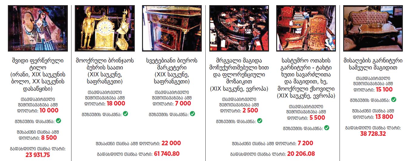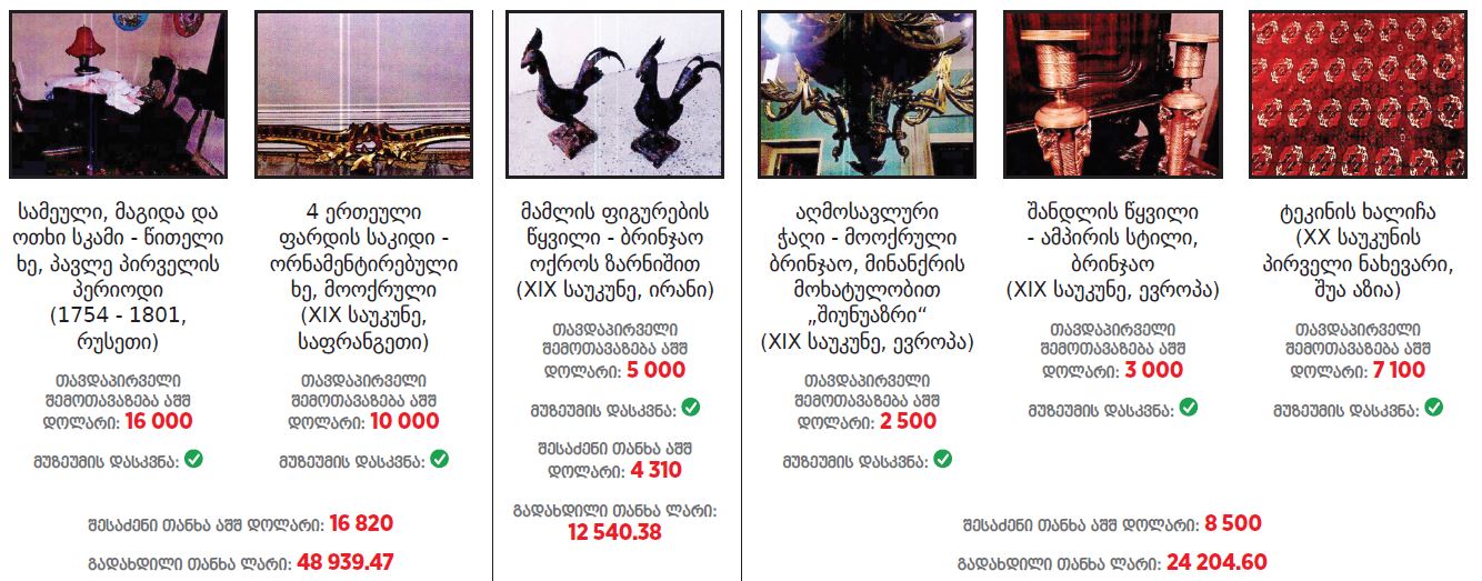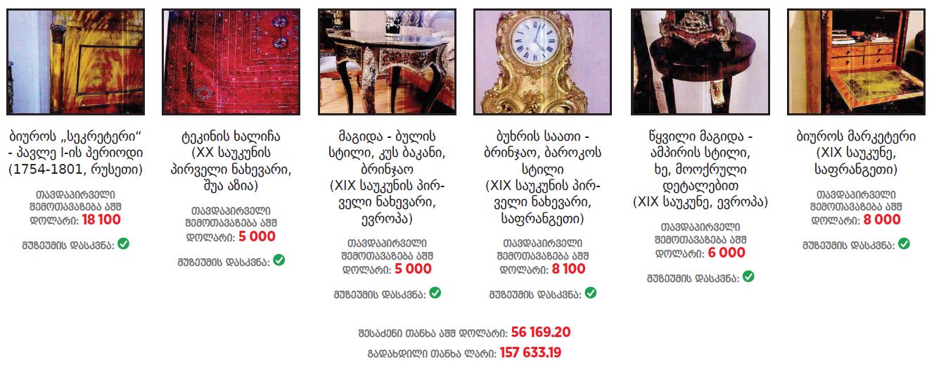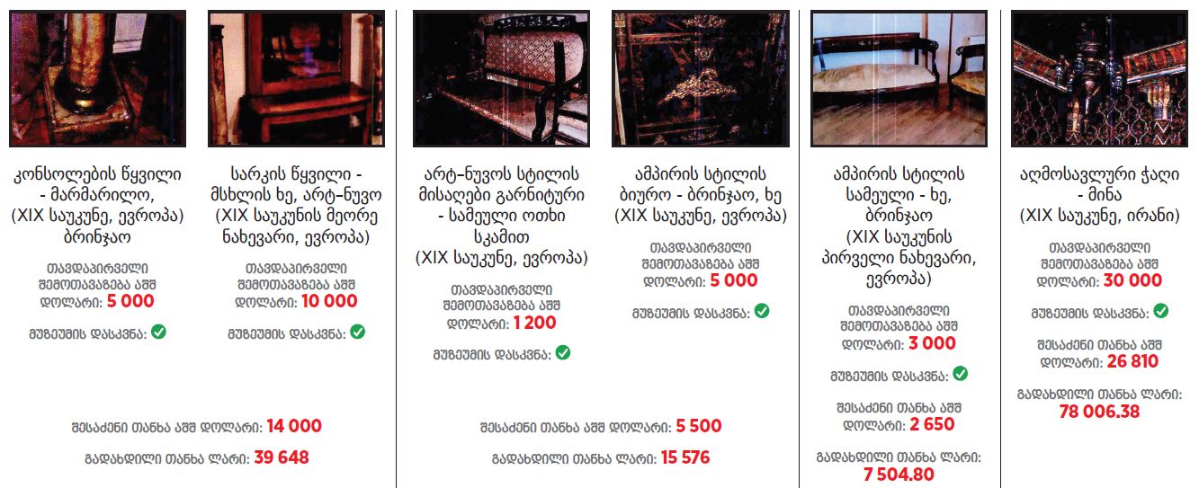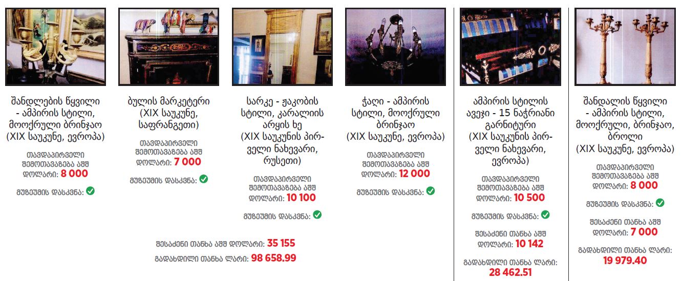 ათონელის რეზიდენციას შემდეგი ნივთები შეემატა (სია და ფოტოები IDFI-ს ანგარიშიდან)