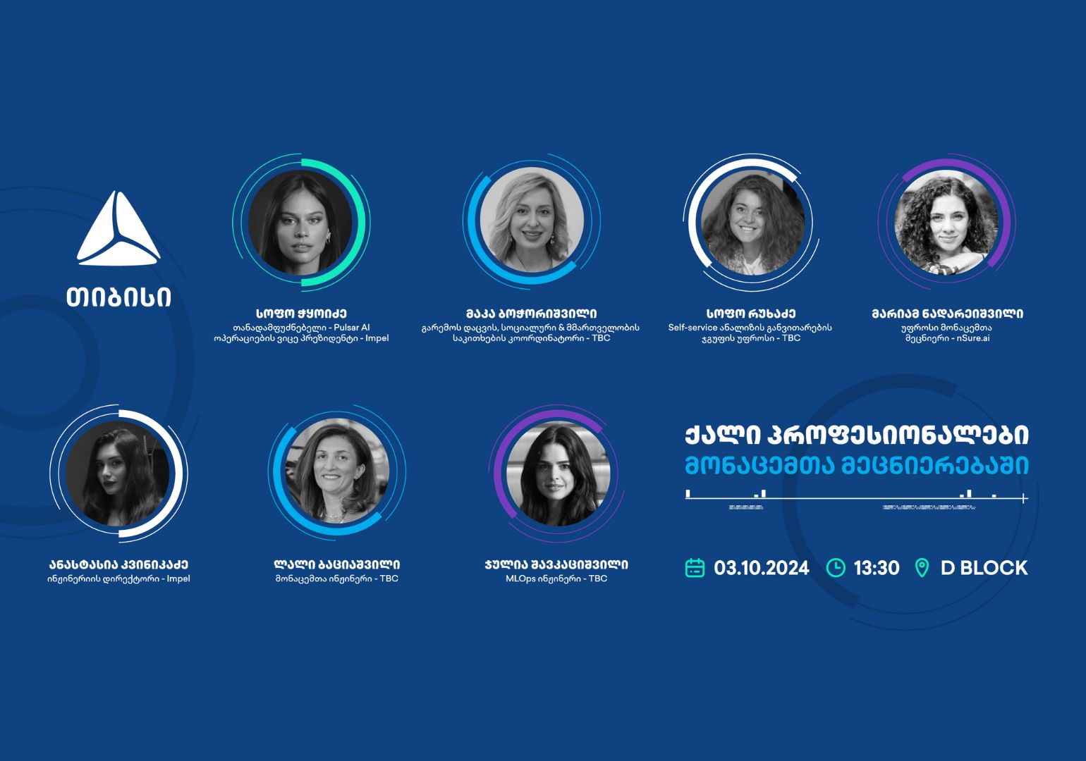„კონფერენცია „ქალი პროფესიონალები მონაცემთა მეცნიერებაში“ ქმნის ინოვაციურ სივრცეს ცოდნის მიღებისა და გაზიარებისთვის. მონაწილეებს შესაძლებლობა აქვთ, გახდნენ პროგრესული ცვლილების ნაწილი, დაინახონ ახალი შესაძლებლობები პროფესიული და პიროვნული განვითარებისთვის, აღმოაჩინონ სხვადასხვა ტექნოლოგიური გადაწყვეტა და იპოვონ მხარდაჭერა თანამოაზრეებს შორის. მონაცემთა მეცნიერება არის მიმართულება, რომელიც ეკონომიკური საქმიანობის ინოვაციურობის საფუძველს ქმნის; მონაცემთა მეცნიერი ქალები კი ამ ინოვაციურობის ელჩები არიან დღეს ჩვენს საზოგადოებაში“ – მაკა ბოჭორიშვილი, თიბისის გარემოს დაცვის, სოციალური და მმართველობის საკითხების კოორდინატორი.