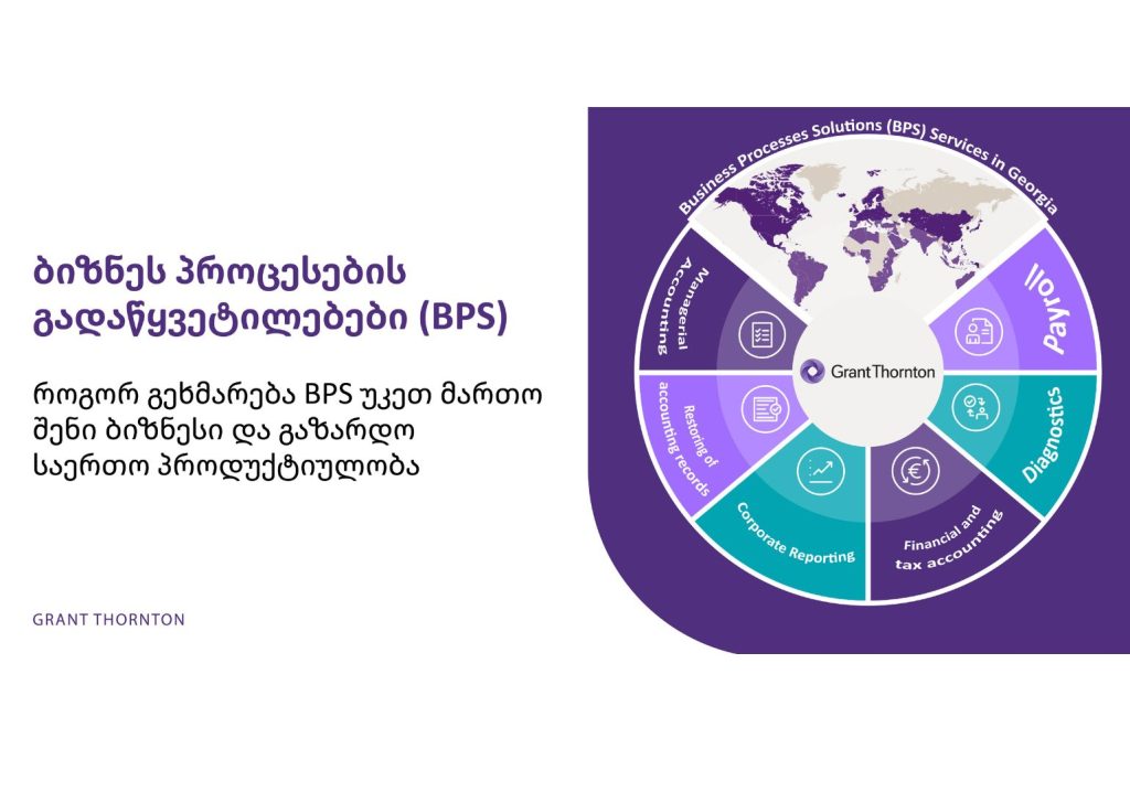 გრანთ თორნთონის გლობალურმა ქსელმა სწორედ ბიზნესის განვითარებადი საჭიროებების დაკმაყოფილების მიზნით, წარმოადგინა ბიზნესპროცესების გადაწყვეტილებების სერვისი (Business Process Solutions ე.წ.BPS). აღნიშნული სერვისის ჩამოყალიბების საფუძველს თავად გრანთ თორნთონის ძირითადი ღირებულება წარმოადგენს, რაც გულისხმობს ბიზნესისთვის ჰოლისტიკური გადაწყვეტილებების მიწოდებას, რომელიც სცილდება ტრადიციულ აუდიტორულ და საბუღალტრო მომსახურებას. წლების განმავლობაში, გრანთ თორნთონის გლობალურმა გუნდმა ღრმად გაიაზრა სხვადასხვა ინდუსტრიის სირთულეები და უნიკალური გამოწვევები, რომლებსაც ისინი აწყდებიან. ამ ექსპერტიზის გამოყენებით, ფირმამ გამოავლინა მზარდი მოთხოვნა მომხმარებლებს შორის მორგებულ გადაწყვეტილებებზე, რომლებიც პასუხობენ ოპერაციულ სირთულეებს და აუმჯობესებენ მთლიან შესრულებას.