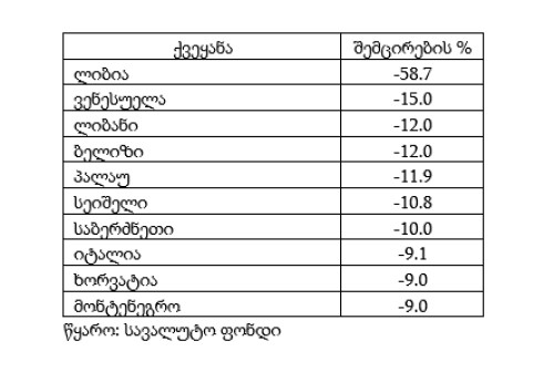 ცხრილი: ქვეყნები, სადაც 2020 წელს ეკონომიკა ყველაზე მეტად შემცირდება