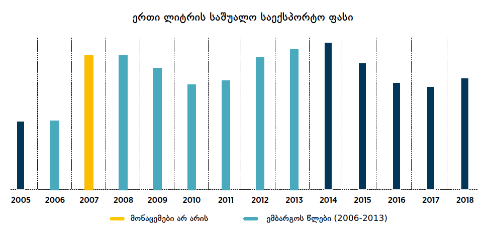 ჩანს, რუსულმა ემბარგომ ქართული ღვინის ხარისხი მნიშვნელოვნად გაზარდა, რადგან საშუალო საექსპორტო ფასი მალევე თითქმის გაორმაგდა. მიუხედავად იმისა, რომ საექსპორტო ბაზრების რაოდენობა გაიზარდა და მსოფლიოს 55 ქვეყანას გადასცდა, დღესაც, ემბარგოს მოხსნის შემდეგ, ქართული ღვინის მთავარი შემსყიდველი რუსეთია (2018 წლის 11 თვეში მთლიანი ექსპორტის 61%). შედეგიც აშკარაა: ღვინის ექსპორტის ზრდას კი საშუალო საექსპორტო ფასის ანალოგიური ზრდა აღარ მოჰყოლია.