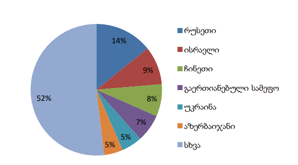 ქვეყნების მიხედვით კი წილები შემდეგნაირად ნაწილდება: