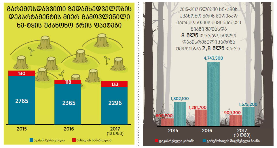 IDFI-ის ერთ-ერთი ბოლო კვლევა საქართველოში ხე-ტყის უკანონო ჭრას შეეხება. ბოლო პერიოდის მოვლენების ფონზე, ანგარიში ორმაგად უფრო საინტერესო და საყურადღებო შეიძლება გახდეს. ქვემოთ მოყვანილი ინფორმაცია 2015, 2016 და 2017 წლების პირველ 10 თვეს მოიცავს.