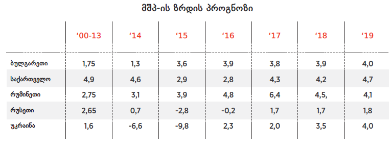 საქართველოს სატრანზიტო ფუნქციიდან გამომდინარე, ქვეყანაზე გამავალი ტვირთბრუნვის საერთო მოცულობის ცვლილება დამოკიდებულია როგორც თავად ქვეყნის შიგნით მაკროეკონომიკური განვითარების დონეზე, კერძოდ კი მშპ-ის ზრდის ტემპზე, ისე ტრანზიტული ტვირთების შემთხვევაში მეზობელი სახელმწიფოების სავაჭრო ბრუნვის ინტენსივობაზე. მიუხედავად ამგვარი მნიშვნელობის უგულებელყოფის შეუძლებლობისა, საკონტეინერო ტვირთზიდვის მოცულობის პროგნოზირებისას მნიშვნელოვანია, გაანალიზებულ იქნას უპირველესად შავი ზღვის რეგიონის წევრი ქვეყნის ეკონომიკური ზრდის რეალური შესაძლებლობები, რადგან ქვეყნის მშპ-ის ზრდა პირდაპირ კორელაციაშია ტვირთზიდვების ზრდასა და შემცირებასთან. მსოფლიო ბანკის მიერ შემოთავაზებული პროგნოზის მიხედვით, საქართველოში მშპ-ის ზრდა 2019 წელს ნავარაუდებია 4,7%-იანი ნიშნულით, რაც გასული წლის დონეს 0,5%-ით აღემატება. ანალოგიური პროცენტული მაჩვენებლით ზრდაა ნავარაუდები უკრაინაშიც, თუმცა ამ შემთხვევაში დადგენილი დონე 4,0%-ს არ აღემატება. ეკონომიკური ზრდაა ნავარაუდები ბულგარეთსა და რუსეთის ფედერაციაში, თუმცა უმნიშვნელოდ – 0,1%. ერთადერთი ქვეყანა რეგიონში, რომლის მშპ-ის ზრდის პროგნოზი პესიმისტურია 2019 წლისთვის, არის რუმინეთი, სადაც ნავარაუდებია 2018 წლის დონის შემცირება 0,4%-ით. 2019 წლისათვის შავი ზღვის რეგიონში მსოფლიო ბანკის პროგნოზის მიხედვით მშპ-ის ზრდის ყველაზე მაღალ ნიშნულს – 4,7%-ს საქართველო მიაღწევს, რაც ლოგიკურად უნდა აისახოს ტვირთბრუნვის საერთო მოცულობის პოზიტიურ ცვლილებაზე.