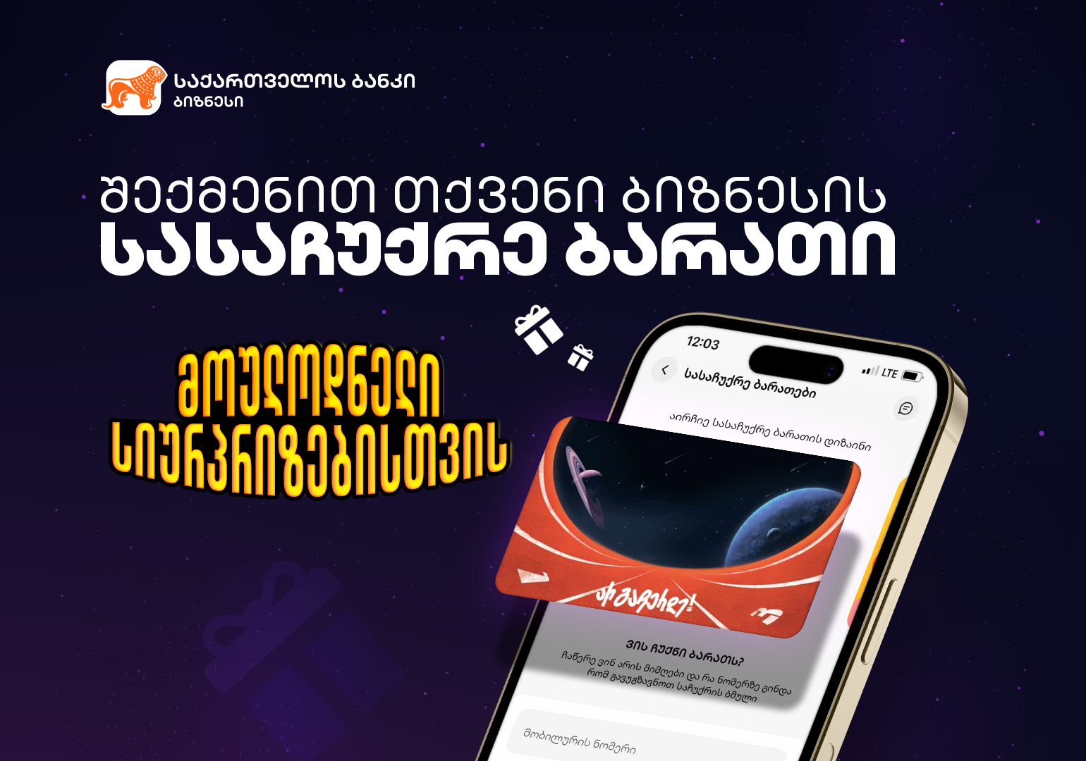 საქართველოს ბანკი სიახლეების დანერგვას აქტიურ რეჟიმში განაგრძობს. ამჯერად, ბანკმა მომხმარებლებს ახალი პროდუქტი – ციფრულ სასაჩუქრე ბარათი წარუდგინა.