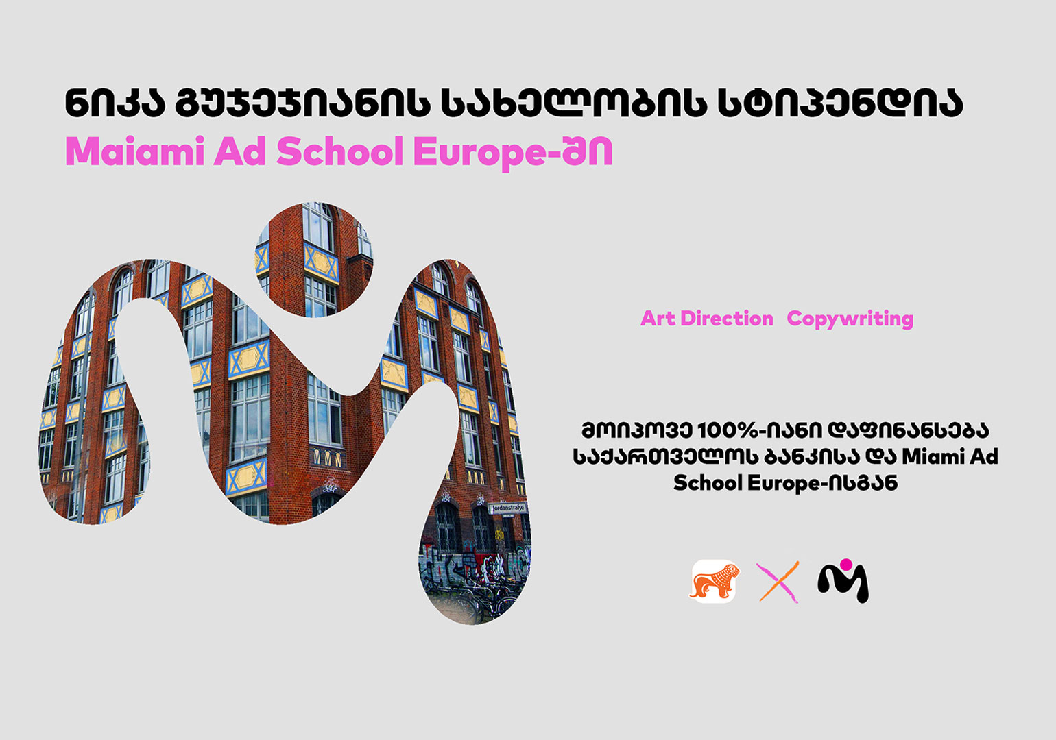 პროგრამის ფარგლებში ახალგაზრდებს აქვთ შესაძლებლობა, მოიპოვონ საქართველოს ბანკის და MASE-ს 100%-იანი დაფინანსება და ისწავლონ ბერლინის Miami Ad School Europe-ში Art Direction-ის და Copywriting-ის ორ წლიან პორტფოლიო პროგრამაზე.